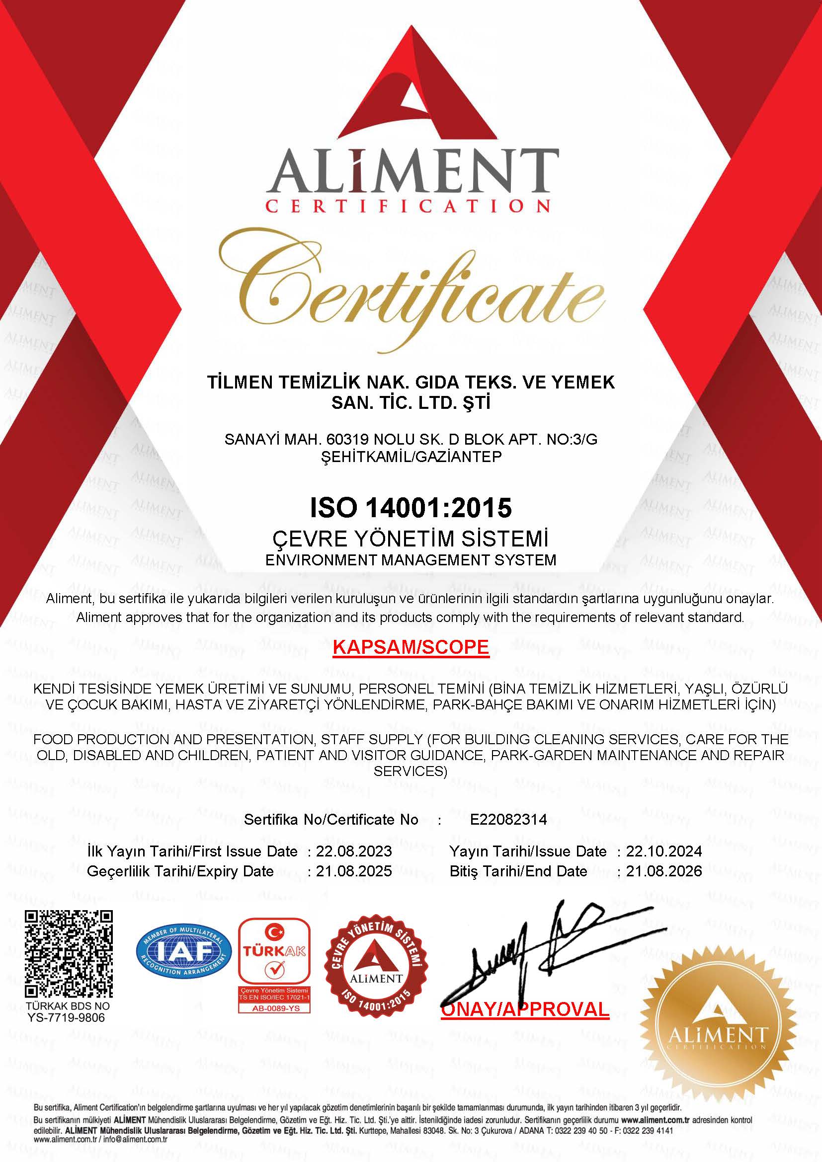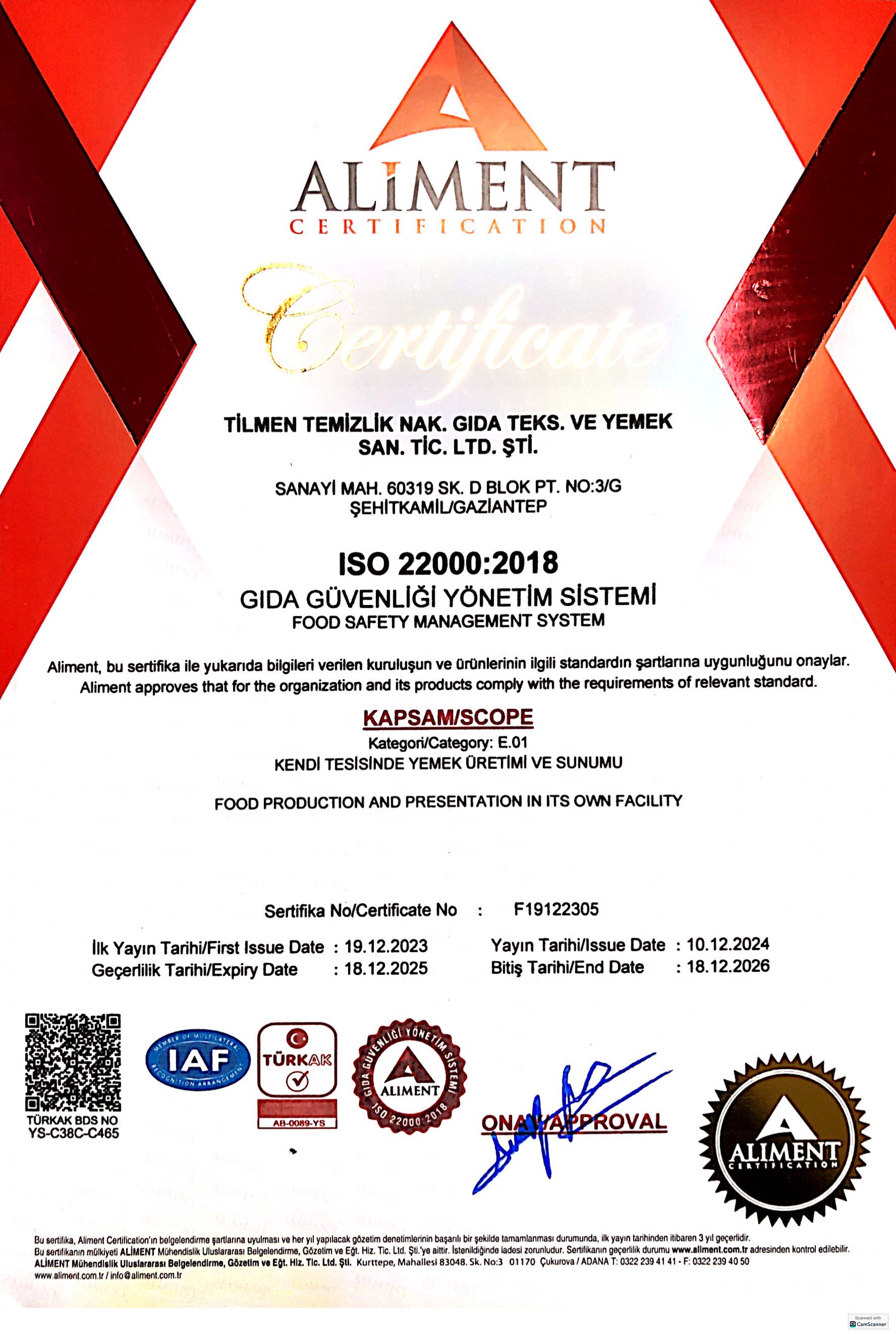 Tilmen Group olarak, 2004 yılında kamu kurum ve kuruluşlarına yönelik yardımcı hizmet faaliyetleriyle sektöre adım attık. İlerleyen süreçte merkez mutfağımızı faaliyete geçirerek hem kamu kurumlarının hem de özel sektörün yemek ihtiyaçlarını karşılayan güçlü bir hizmet yapısı oluşturduk. 2015 yılında Hatay’da, 2016 yılında ise Gaziantep Organize Sanayi Bölgesi’nde faaliyete aldığımız mutfaklarımız ile hizmet ağımızı genişleterek daha fazla noktaya ulaşmanın gururunu yaşıyoruz. 20 yılı aşkın tecrübemiz, alanında uzman kadromuz ve güçlü operasyon altyapımız ile günlük 35.000 kişilik yemek üretim kapasitesine sahibiz. Kalite, hijyen ve müşteri memnuniyetini her zaman önceliğimiz olarak görüyoruz. 2024 yılı itibarıyla, faaliyet alanlarımızı genişleterek gıda sektöründeki deneyimimizi daha ileriye taşımak amacıyla gıda pazarlama şirketimizi kurduk. Bu yeni yapılanma ile kaliteli ve güvenilir ürünleri daha geniş kitlelere ulaştırmayı, sektördeki gücümüzü ve hizmet çeşitliliğimizi artırmayı hedefliyoruz. Şirketimiz; Tarım ve Orman Bakanlığı işletme kayıt belgesi, Hizmet Yeterlilik Belgesi, TSE 13075 Gıda Maddeleri Taşıma Belgesi, ISO 9001:2008 Kalite Yönetim Sistemi ve ISO 22000 Gıda Güvenliği belgelerine sahiptir. Tüm süreçlerimizde en yüksek kalite standartlarını uygulayarak güvenilir ve sürdürülebilir hizmet sunmayı ilke ediniyoruz.