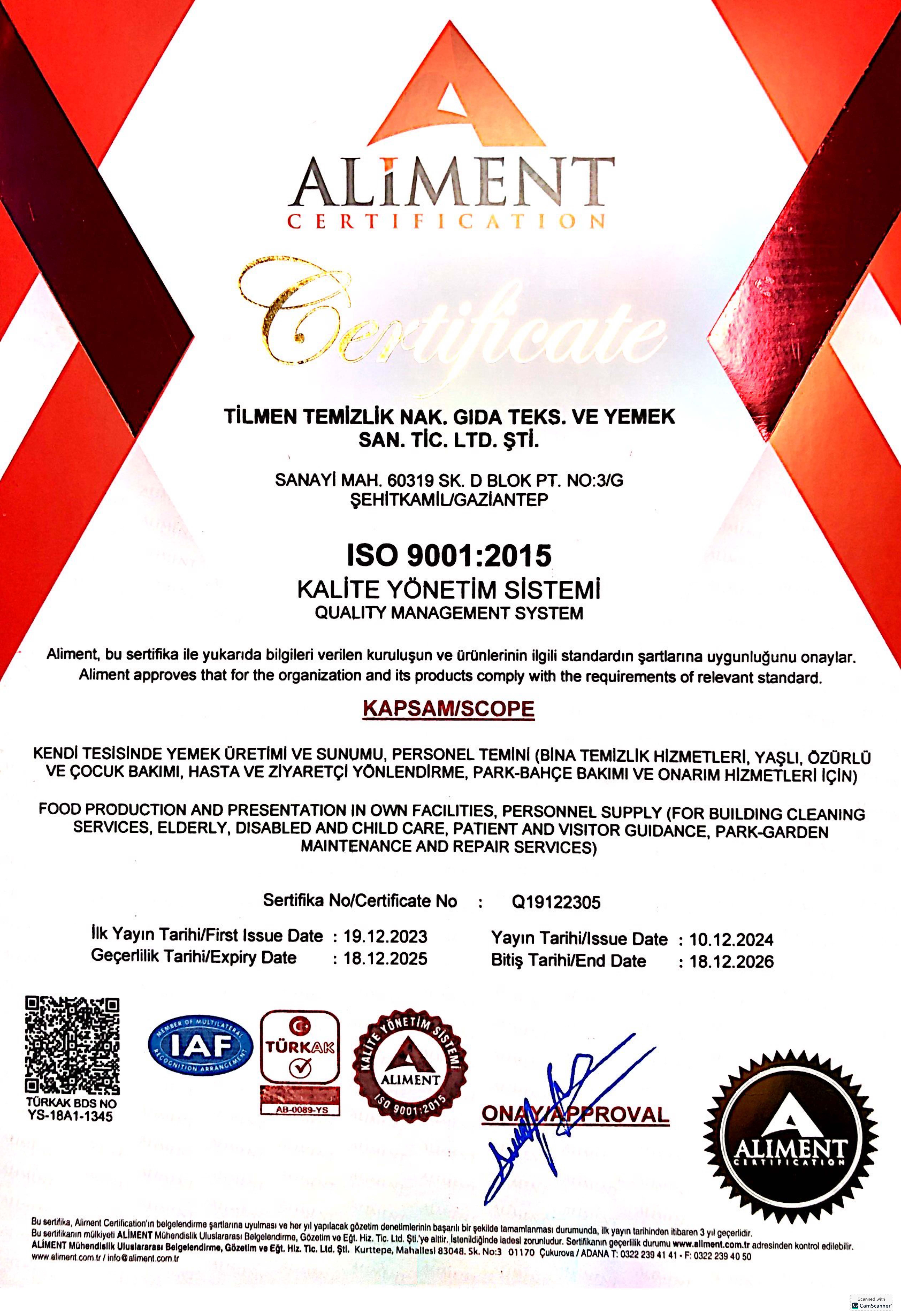Tilmen Group olarak, 2004 yılında kamu kurum ve kuruluşlarına yönelik yardımcı hizmet faaliyetleriyle sektöre adım attık. İlerleyen süreçte merkez mutfağımızı faaliyete geçirerek hem kamu kurumlarının hem de özel sektörün yemek ihtiyaçlarını karşılayan güçlü bir hizmet yapısı oluşturduk. 2015 yılında Hatay’da, 2016 yılında ise Gaziantep Organize Sanayi Bölgesi’nde faaliyete aldığımız mutfaklarımız ile hizmet ağımızı genişleterek daha fazla noktaya ulaşmanın gururunu yaşıyoruz. 20 yılı aşkın tecrübemiz, alanında uzman kadromuz ve güçlü operasyon altyapımız ile günlük 35.000 kişilik yemek üretim kapasitesine sahibiz. Kalite, hijyen ve müşteri memnuniyetini her zaman önceliğimiz olarak görüyoruz. 2024 yılı itibarıyla, faaliyet alanlarımızı genişleterek gıda sektöründeki deneyimimizi daha ileriye taşımak amacıyla gıda pazarlama şirketimizi kurduk. Bu yeni yapılanma ile kaliteli ve güvenilir ürünleri daha geniş kitlelere ulaştırmayı, sektördeki gücümüzü ve hizmet çeşitliliğimizi artırmayı hedefliyoruz. Şirketimiz; Tarım ve Orman Bakanlığı işletme kayıt belgesi, Hizmet Yeterlilik Belgesi, TSE 13075 Gıda Maddeleri Taşıma Belgesi, ISO 9001:2008 Kalite Yönetim Sistemi ve ISO 22000 Gıda Güvenliği belgelerine sahiptir. Tüm süreçlerimizde en yüksek kalite standartlarını uygulayarak güvenilir ve sürdürülebilir hizmet sunmayı ilke ediniyoruz.